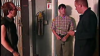 3人の幸運な大きなディックの男は、この黒髪の女に口とおまんこをファックします
